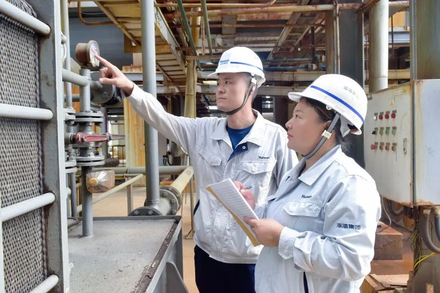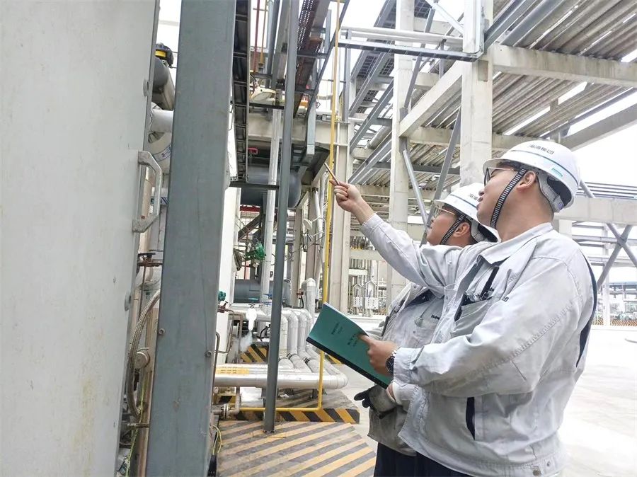 国庆期间,海湾新材料设备人员进行装置维护检查。张建峰 摄