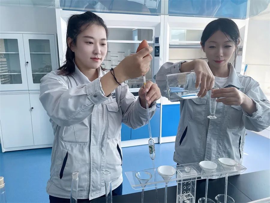 节日期间,海湾索尔维综合管理部化验室员工做好化验分析工作。姜仕晓 摄