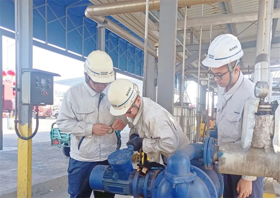 海湾化学员工节日期间立足岗位,认真巡检做好设备维护。丁辉华 摄