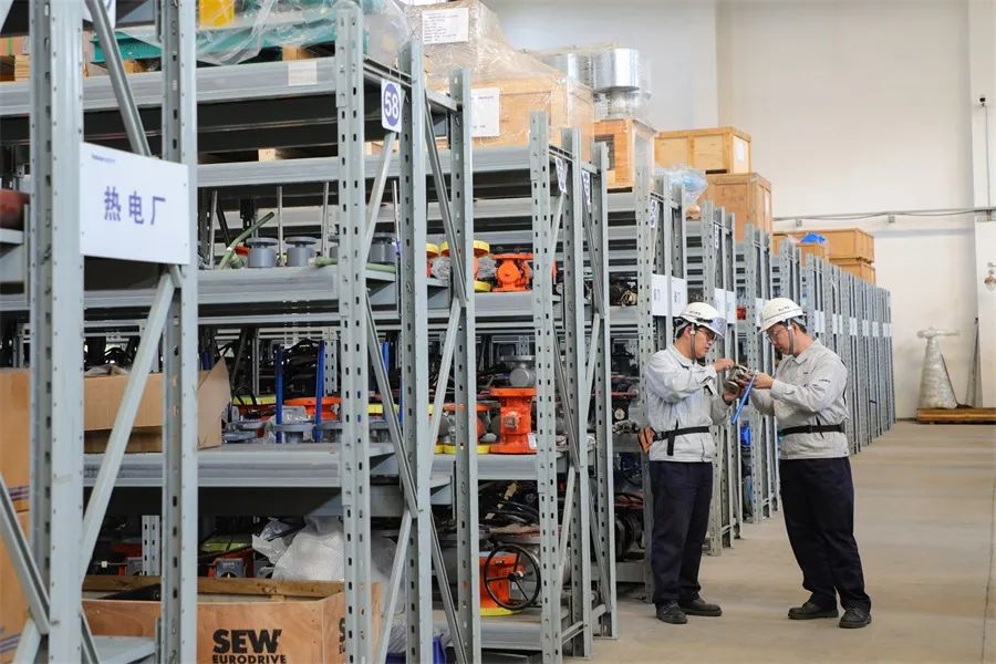 海湾化学员工查看梳理备品备件,确保物资储备充足。张翔钧 摄