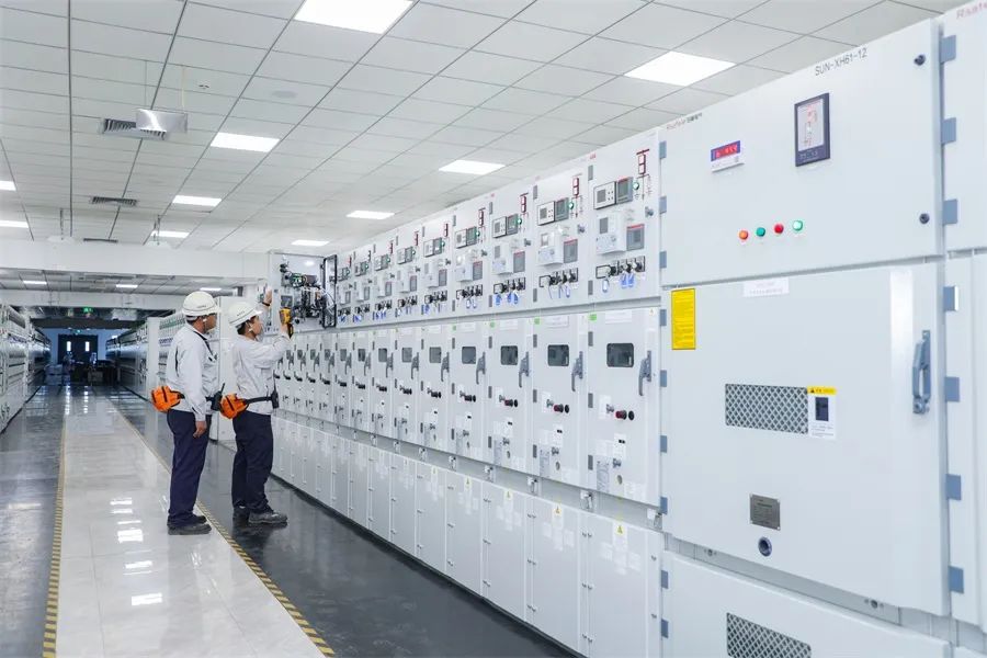 海湾精化电仪控制部员工对厂区配电室进行巡检,确保设备稳定运行。呼扬春晖 摄