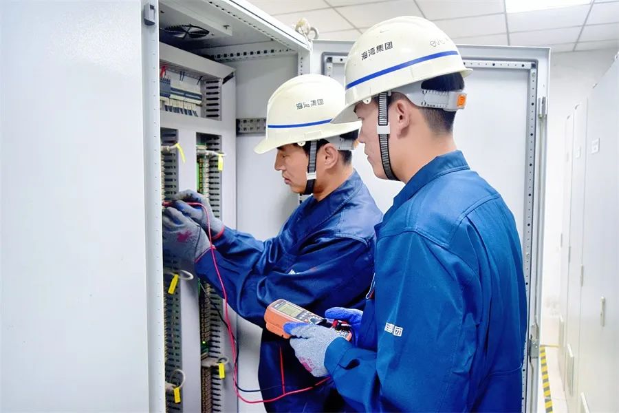 海湾化学员工做好检测维护,确保假期供电稳定。丁辉华 摄