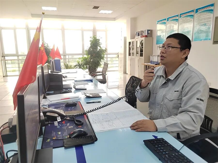 海湾港务调度员工正在协调现场作业。潘洋洋 摄