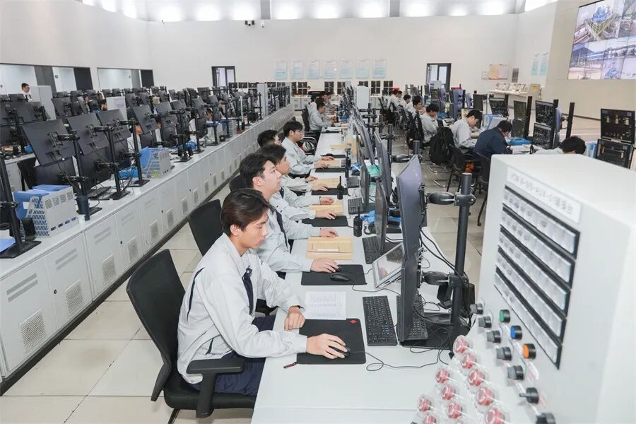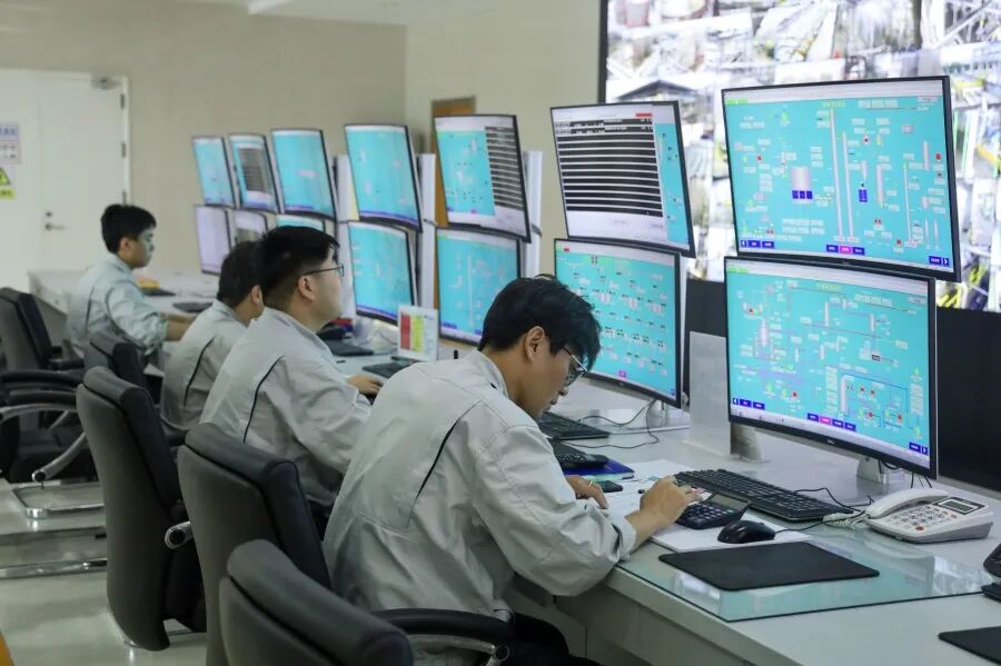 海湾化学中央控制室职工坚守岗位,精准调控生产装置。张翔钧 摄