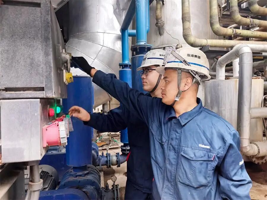 海湾新材料科技中控人员节日在岗值班。张建峰 摄