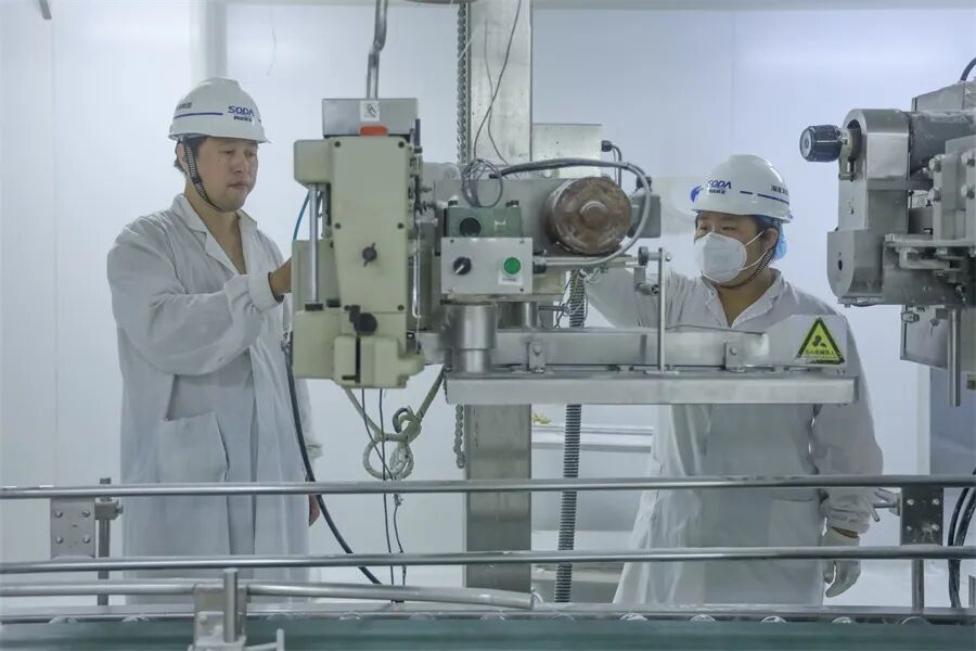 碱业发展小苏打厂包装岗位职工正在对包装机进行检查维护。侯希灏 摄