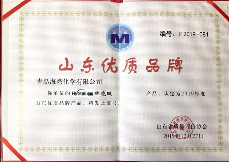 近日,海湾化学海晶牌烧碱产品、东岳牌工业偏硅酸钠产品荣获 2019年度山东省优质品牌。