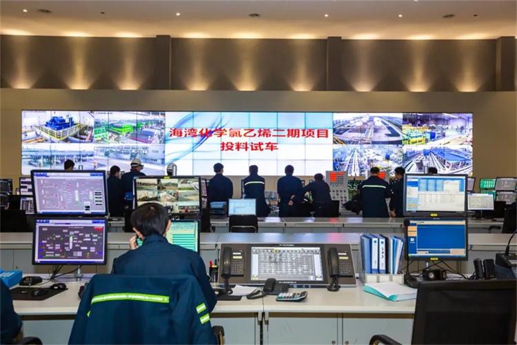 海湾化学二期项目主要包括40万吨/年乙烯法聚氯乙烯、40万吨/年氯乙烯单体、公用工程配套装置等,项目自2019年1月开工建设,在一期基础上进行了全面优化升级,设备性能更稳定,自控水平更高,运行更安全,质量更可靠。