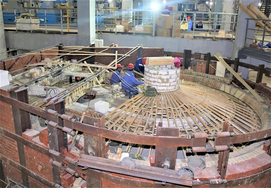 在施工人员夜以继日的努力下,11月份,硫酸钾二期项目建设终于踏上了“新高度”,5#、6#、7#、8#曼海姆炉及其附属设备已砌筑安装完成,按照当前施工进度推算,项目组预计在12月上旬对5#、6#、7#、8#曼海姆炉进行点火试车;截至11月30日,二期生产厂房已完成设备安装425台,总安装完成率达到89%,管道安装也已基本完成,开始进入查漏补缺阶段。